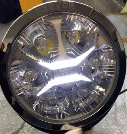 Drogowy reflektor z diodami LED i chromowaną ramką